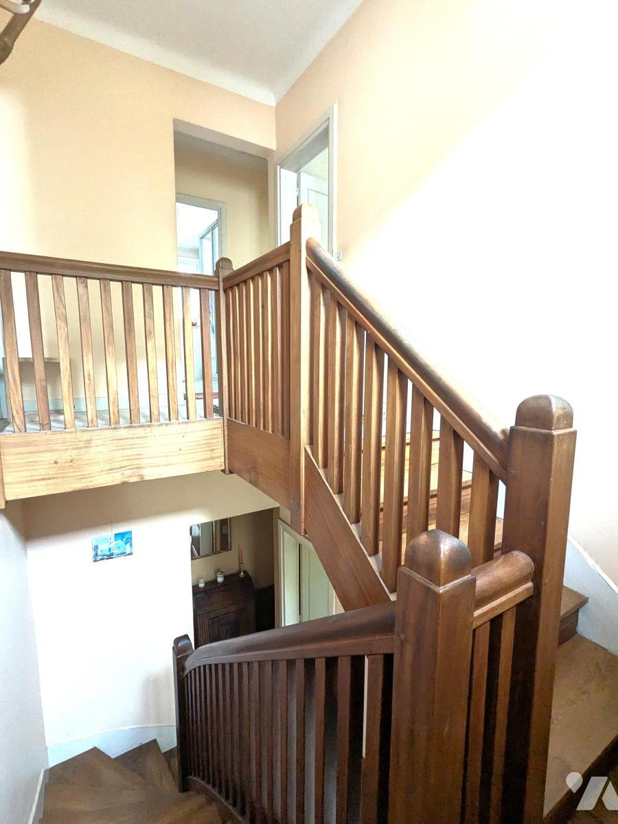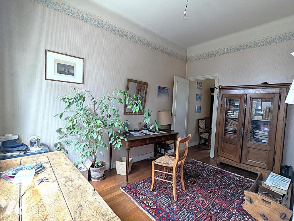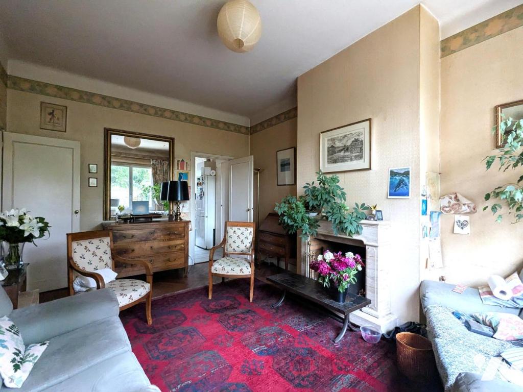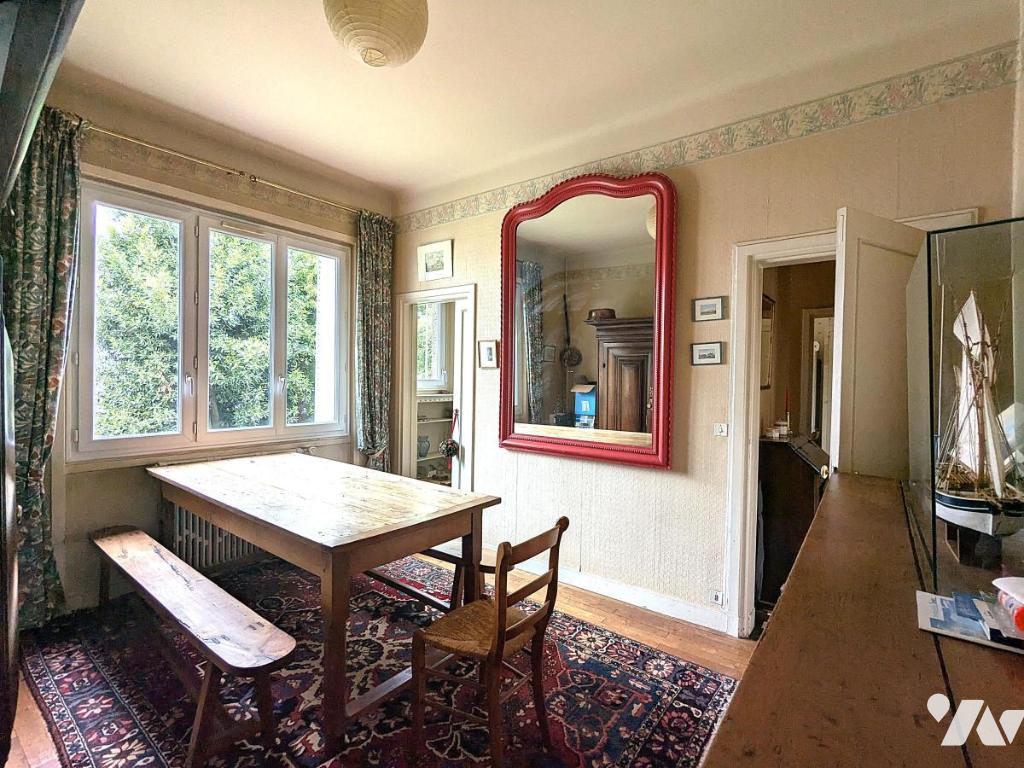 Édifiée sur trois niveaux, cette bâtisse d’environ 142 m² habitables (dont 47 m² non chauffés supplémentaires) offre de beaux volumes répartis sur 3 niveaux, avec parquets massifs, cheminée, moulures et hauteur sous plafond.